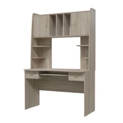 Прекрасное дополнение к молодёжной комнате. Стол оборудован удобными открытыми полочками для разных мелочей, открытыми вертикальными полками для книг и горизонтальными полками за двумя распашными дверями. Также стол оснащён двумя выдвижными ящиками и полкой для клавиатуры.